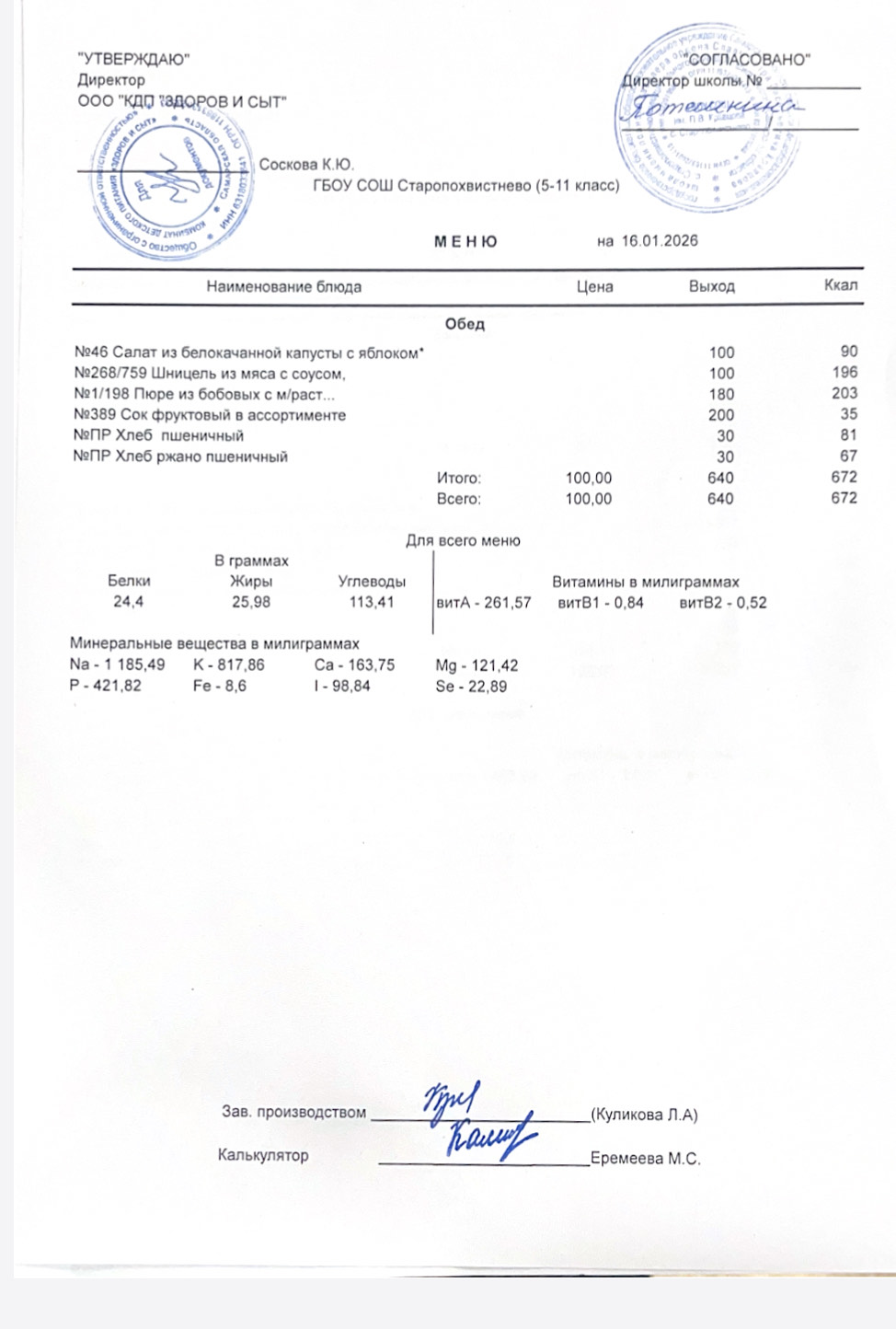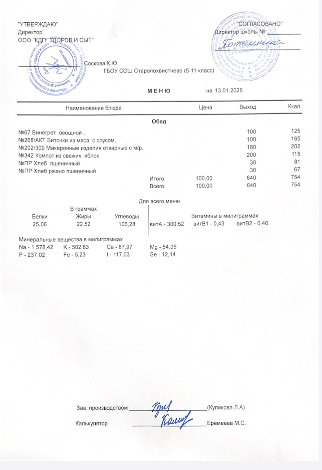 - Примерное двухнедельное меню рациона питания для обучающихся 5-11 классов