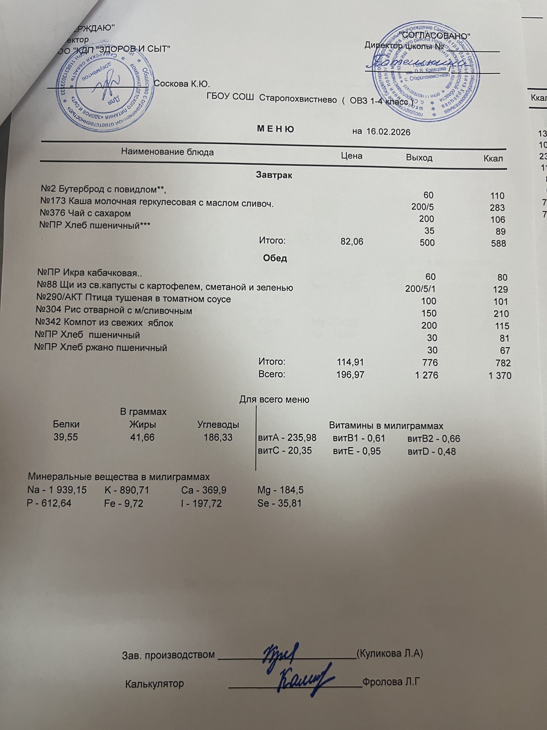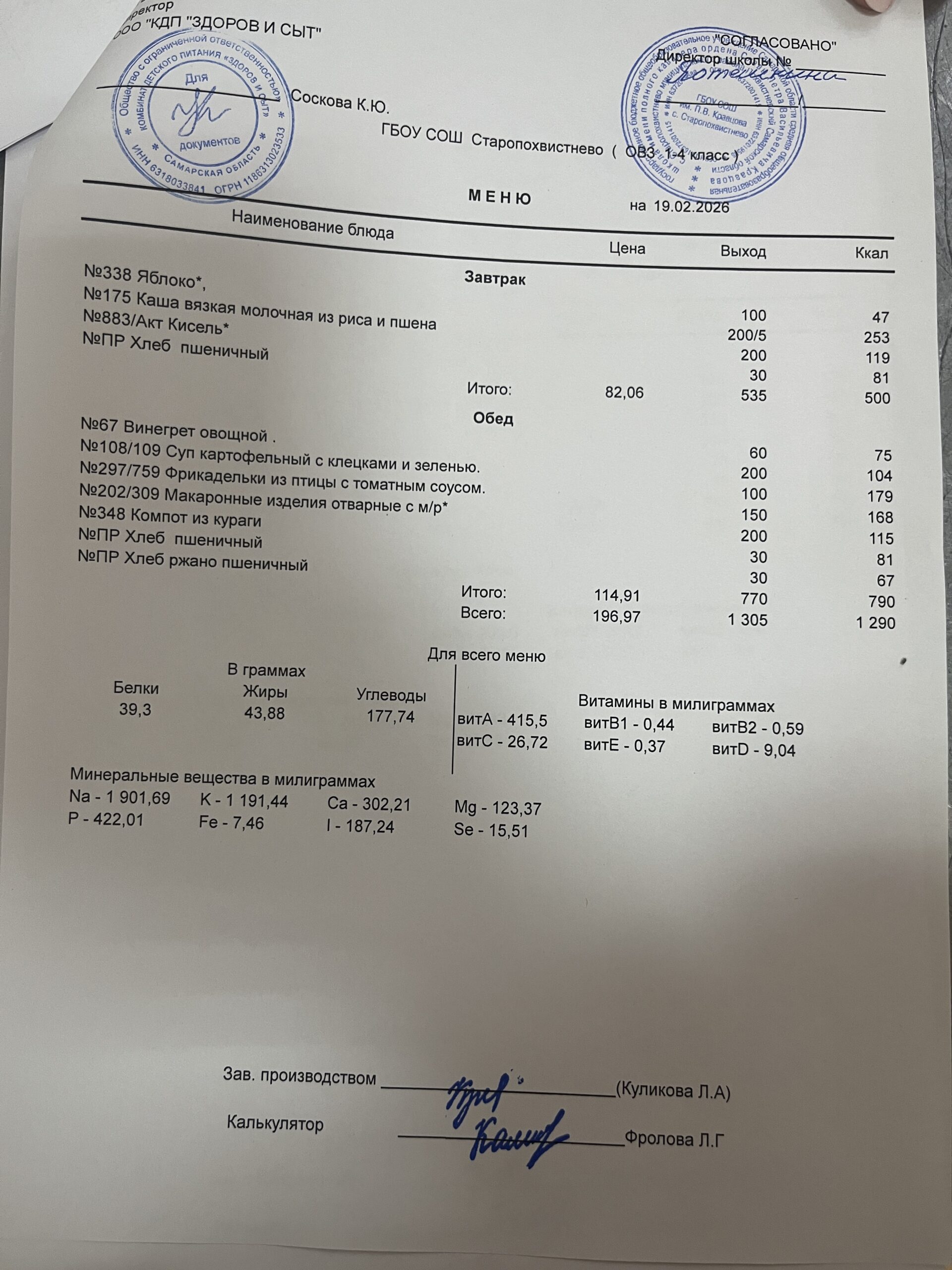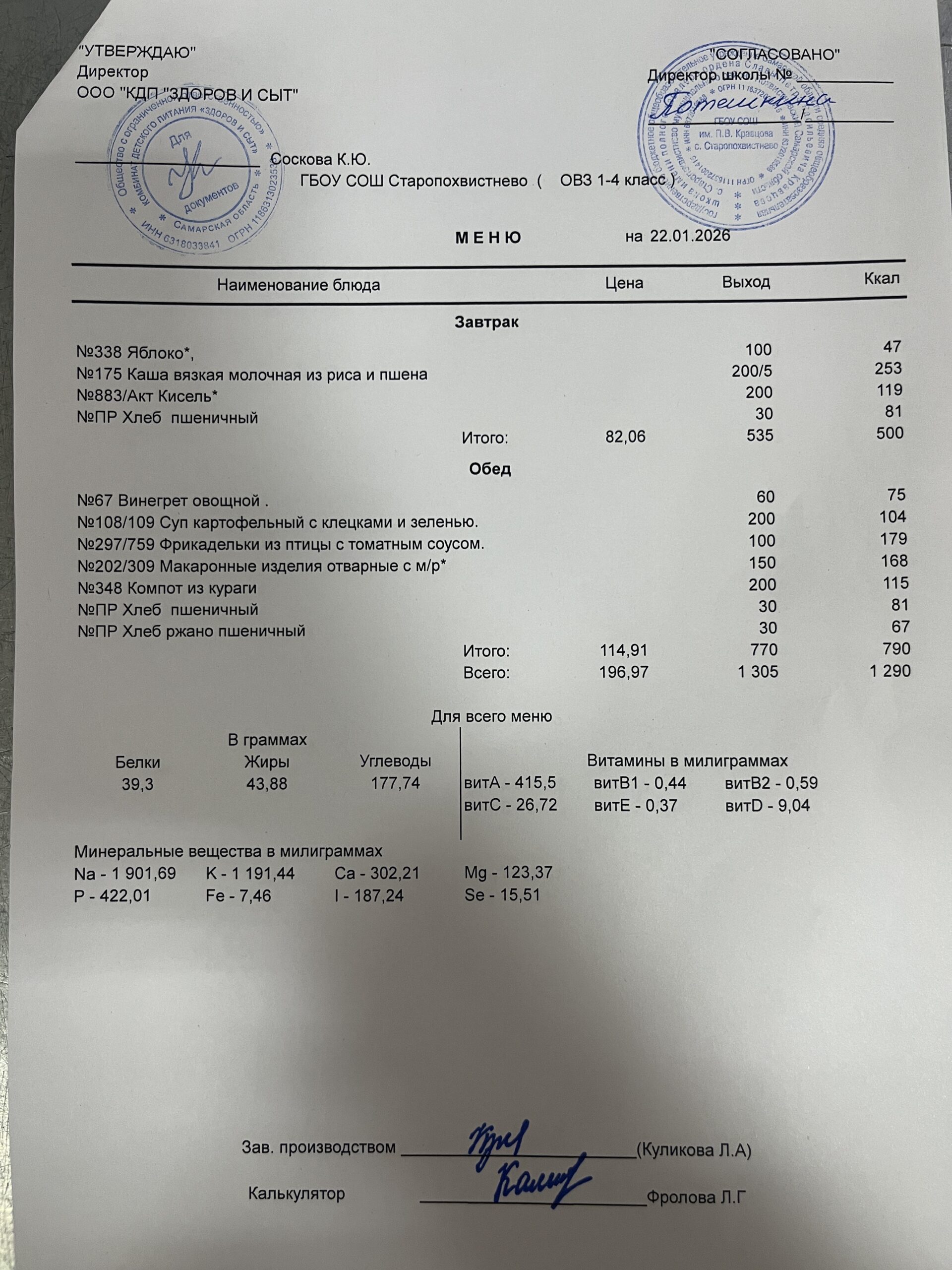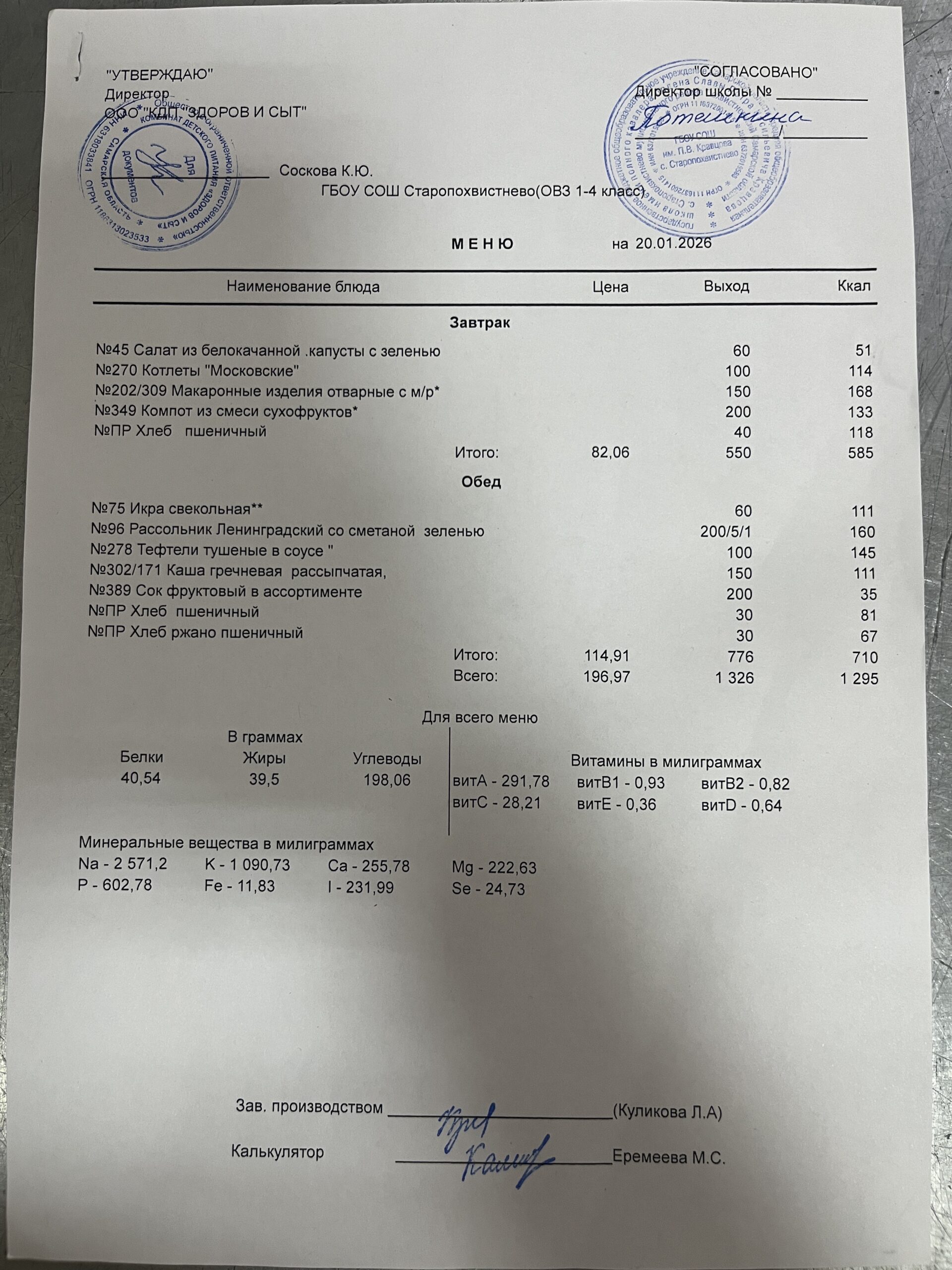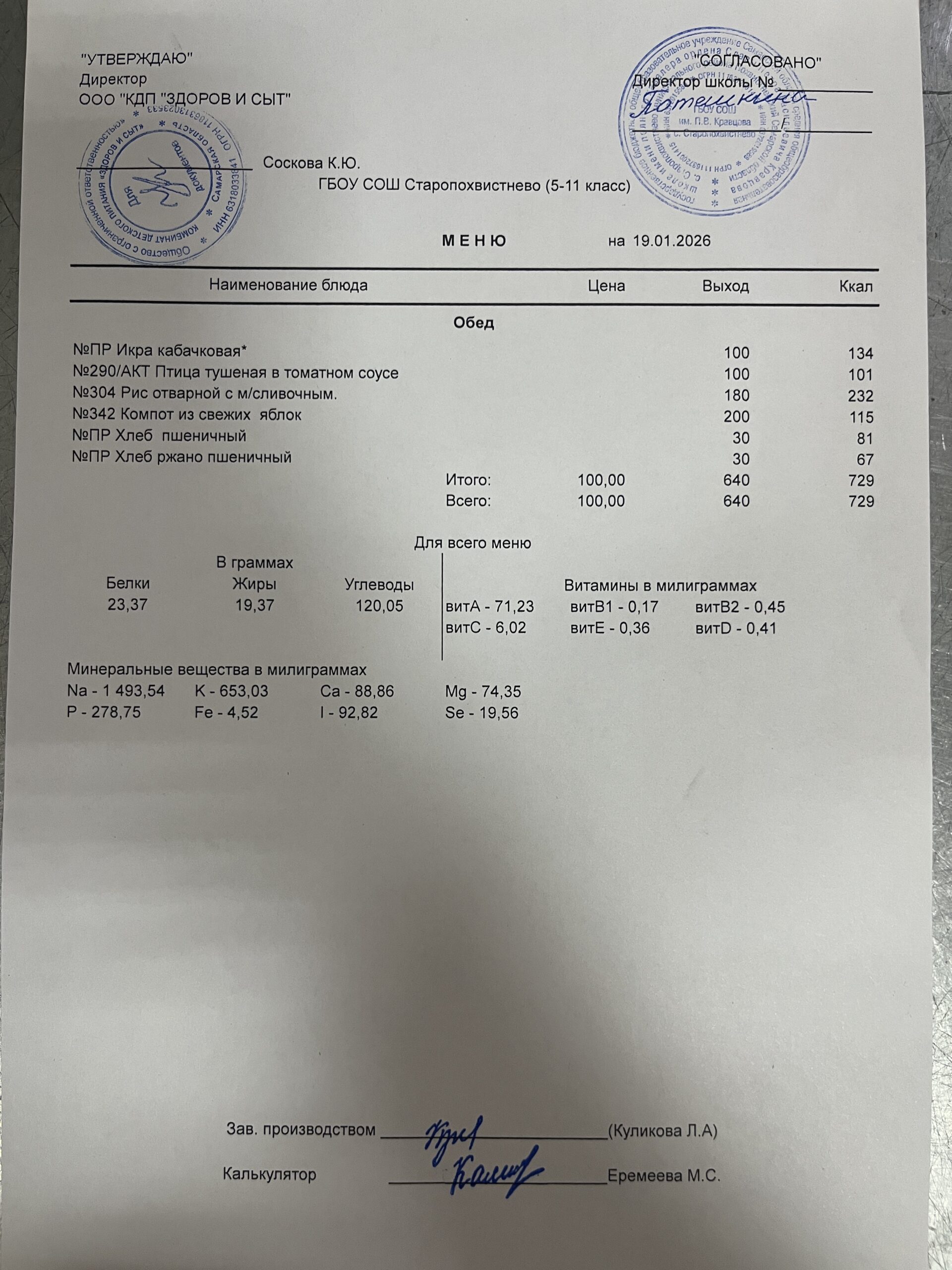 нач. школа 94,39 руб.(в т.ч. витаминизация 19,81 руб. 3 раза в неделю);