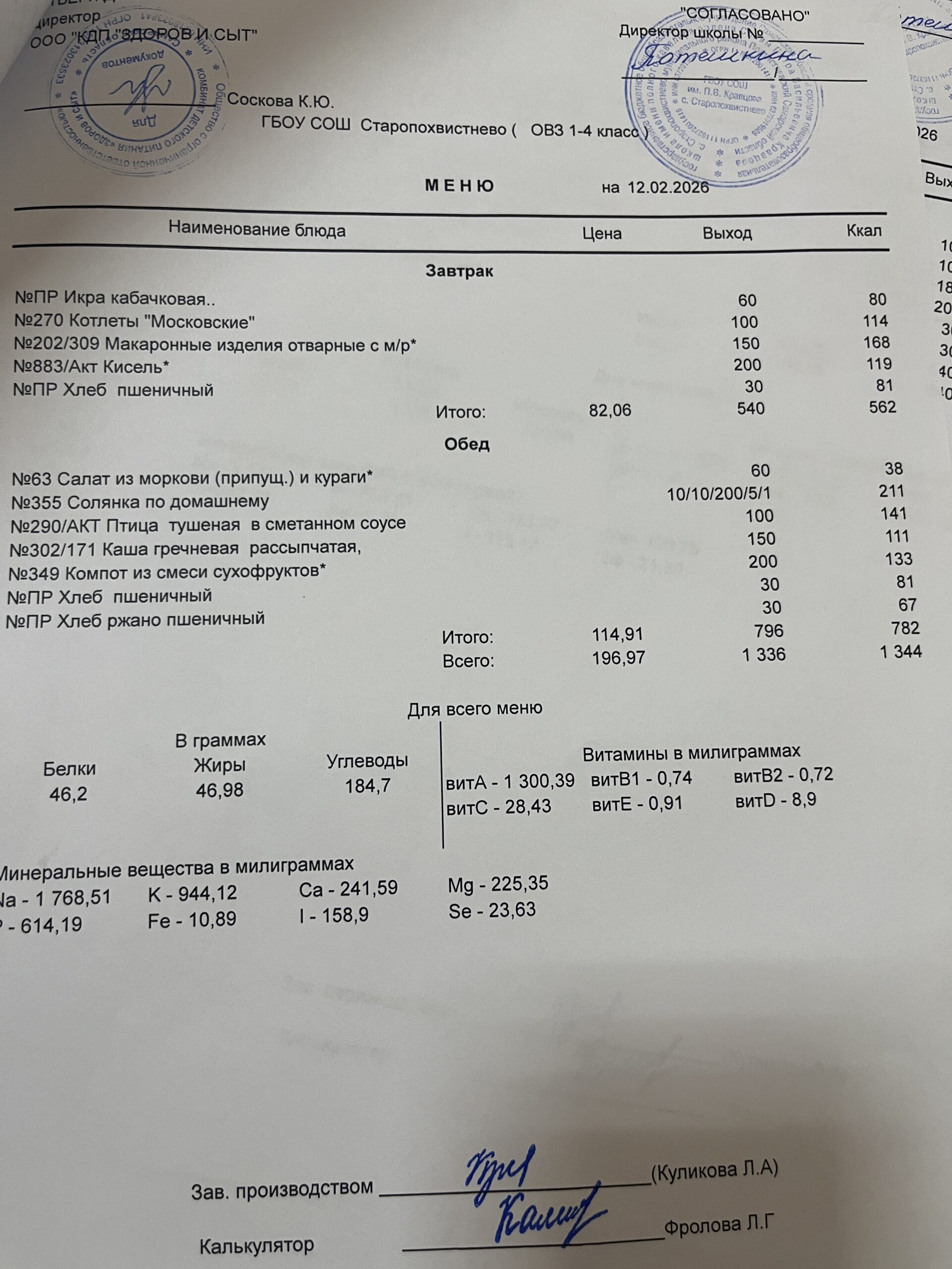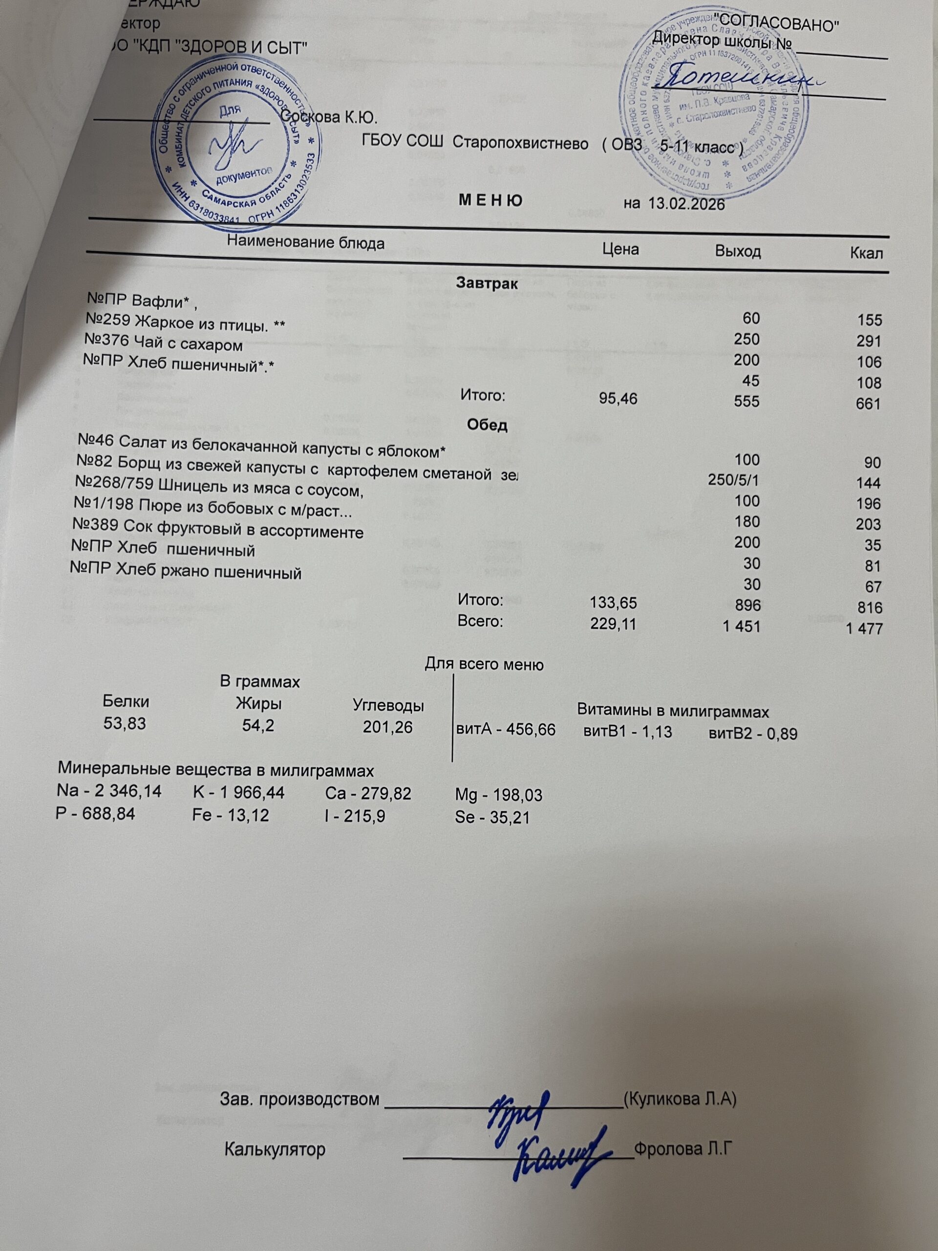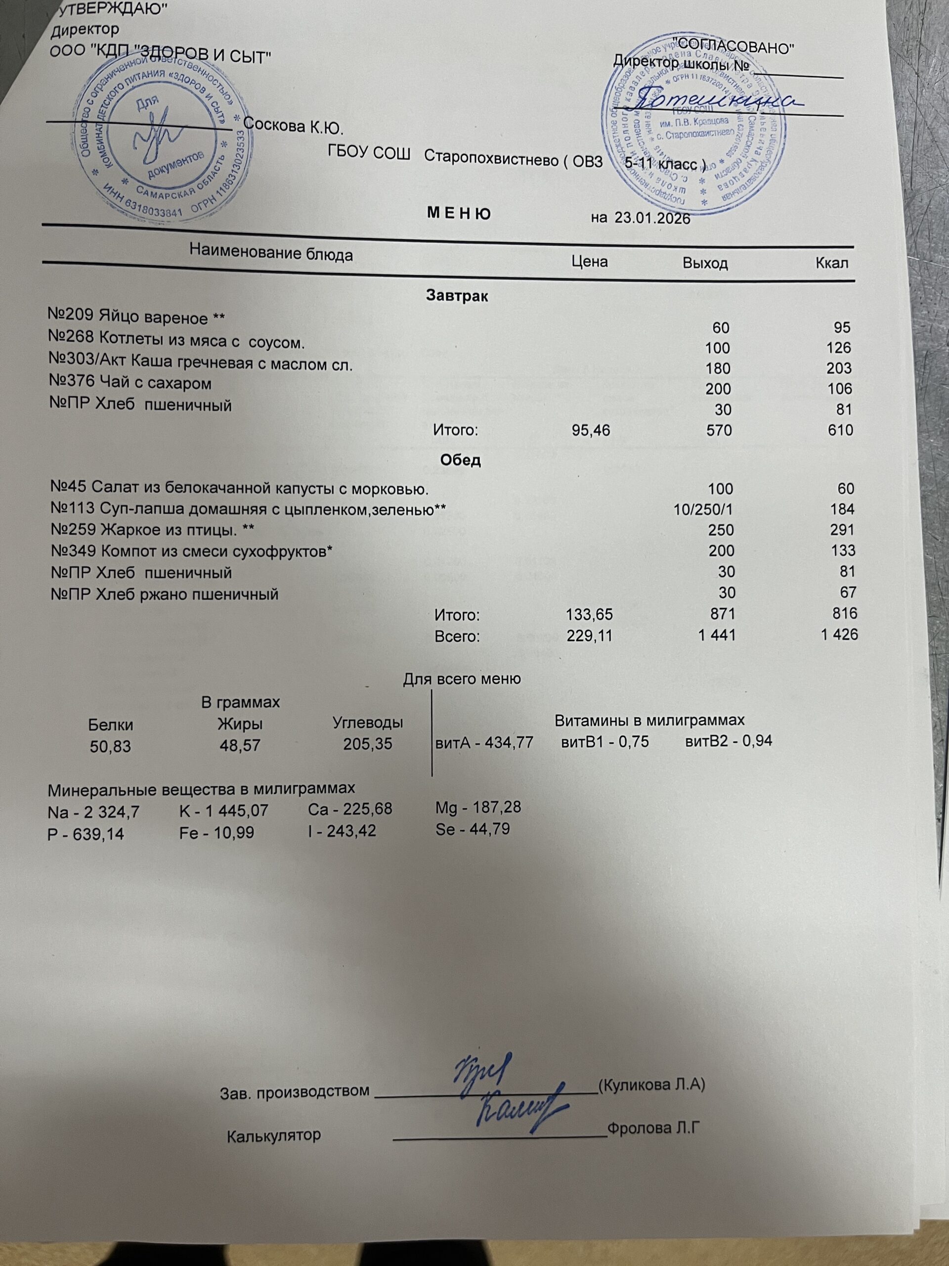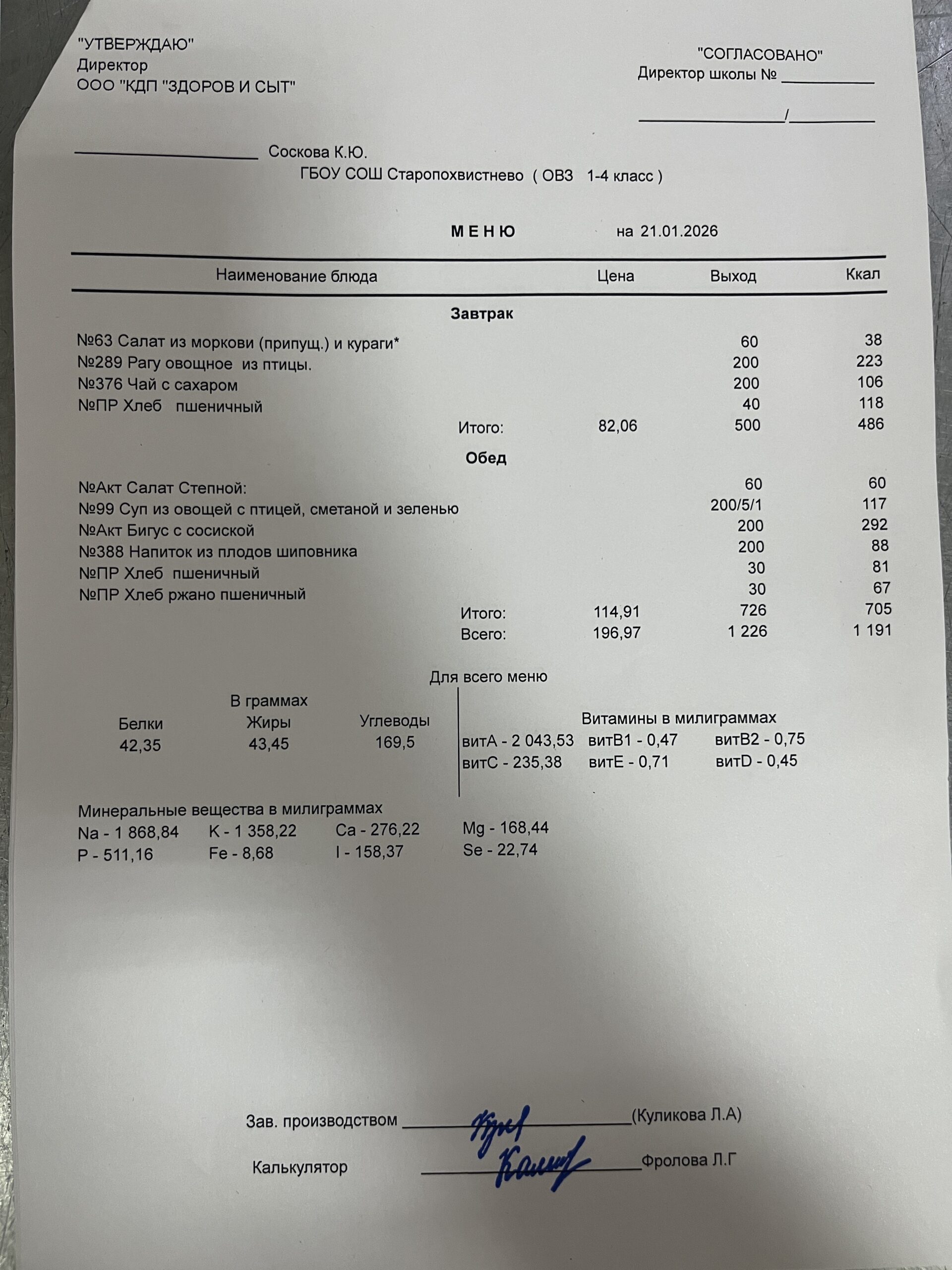 СВО старшие — 228,02(в т.ч. витаминизация 19,81 руб. 3 раза в неделю);