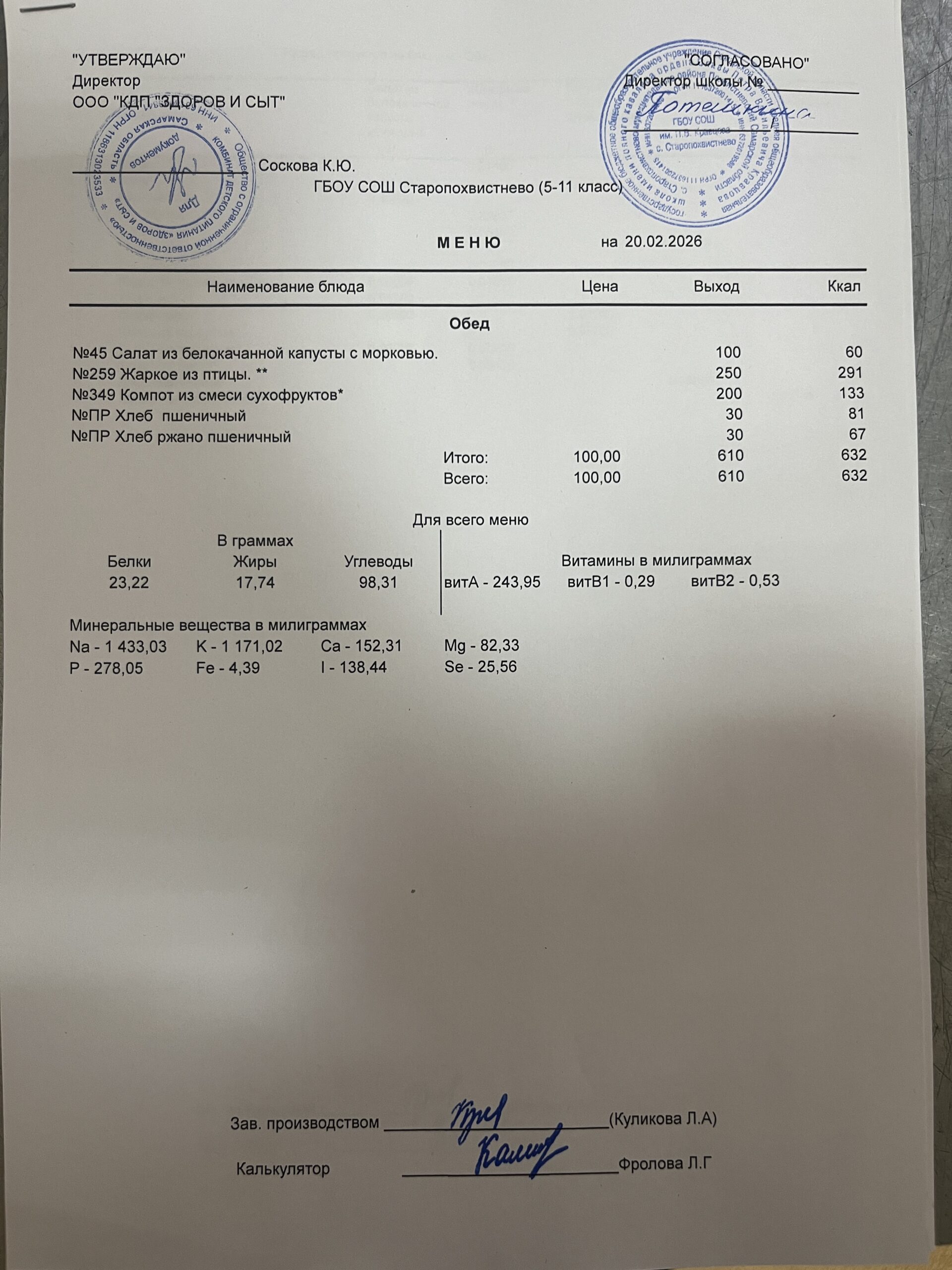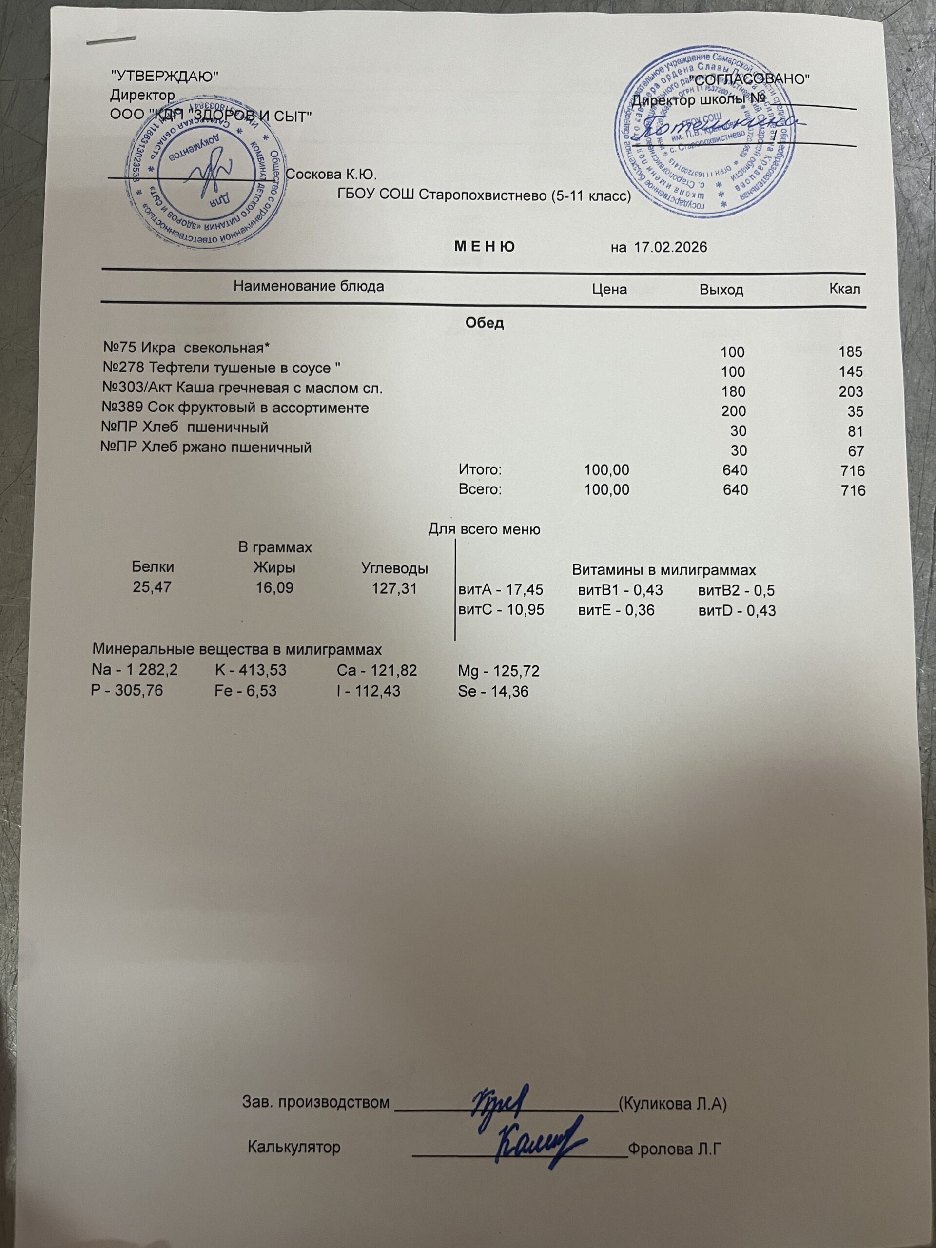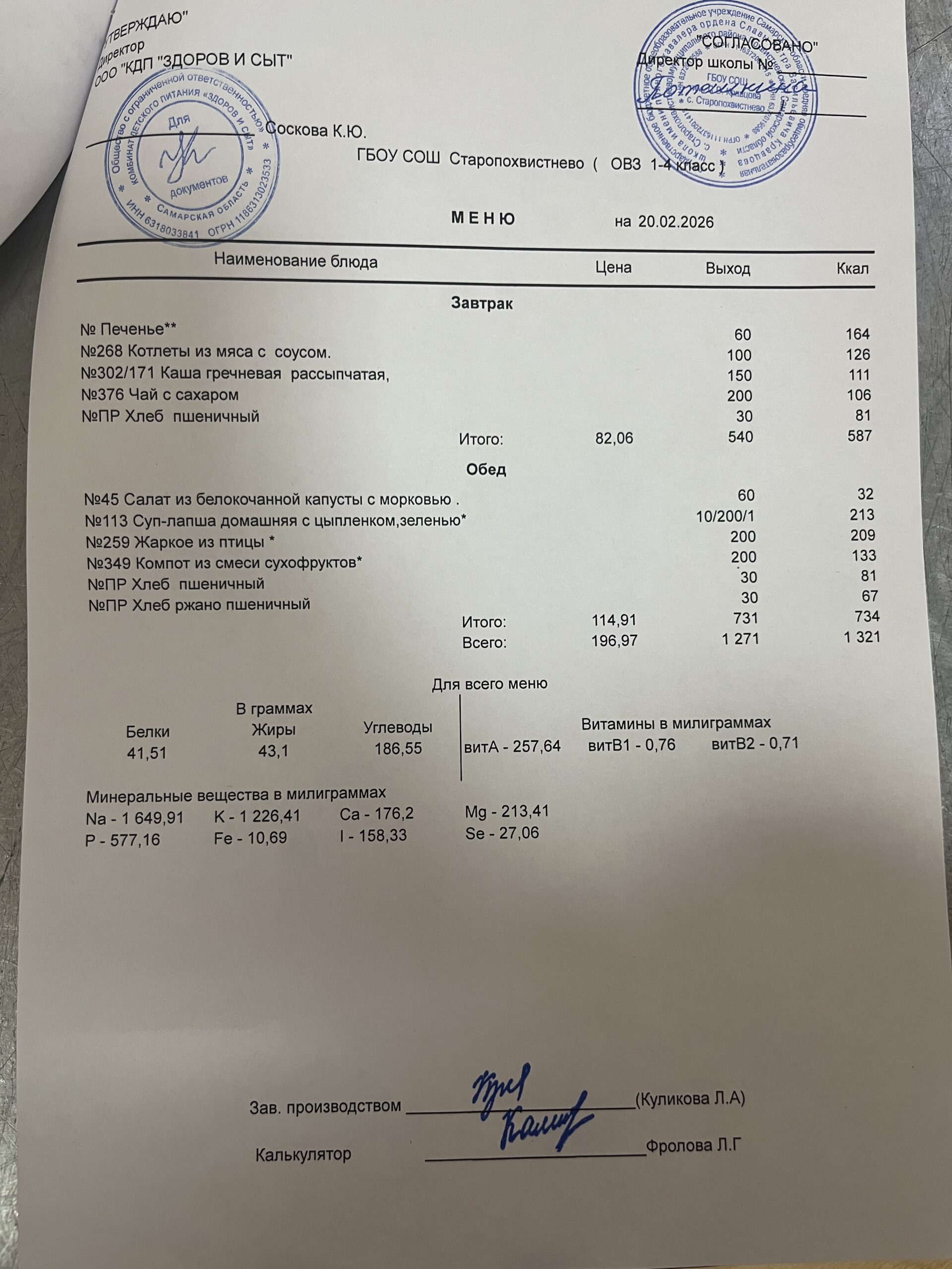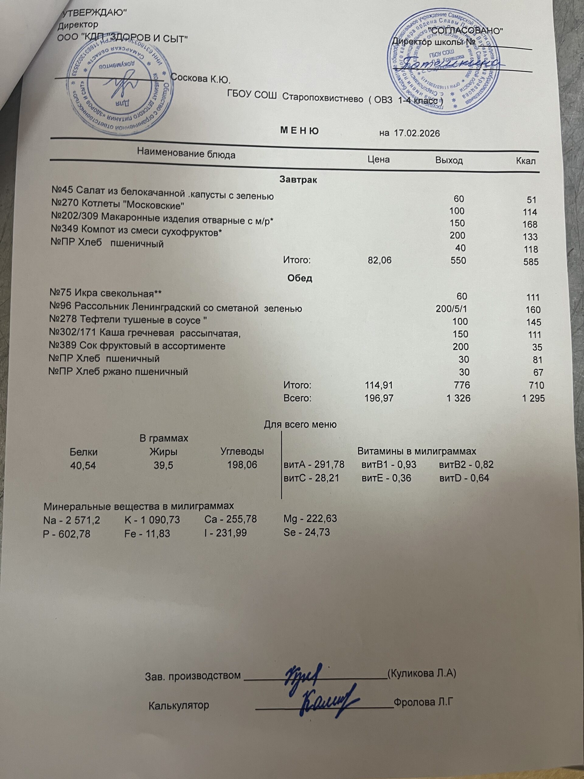 СВО старшие — 228,02(в т.ч. витаминизация 19,81 руб. 3 раза в неделю);